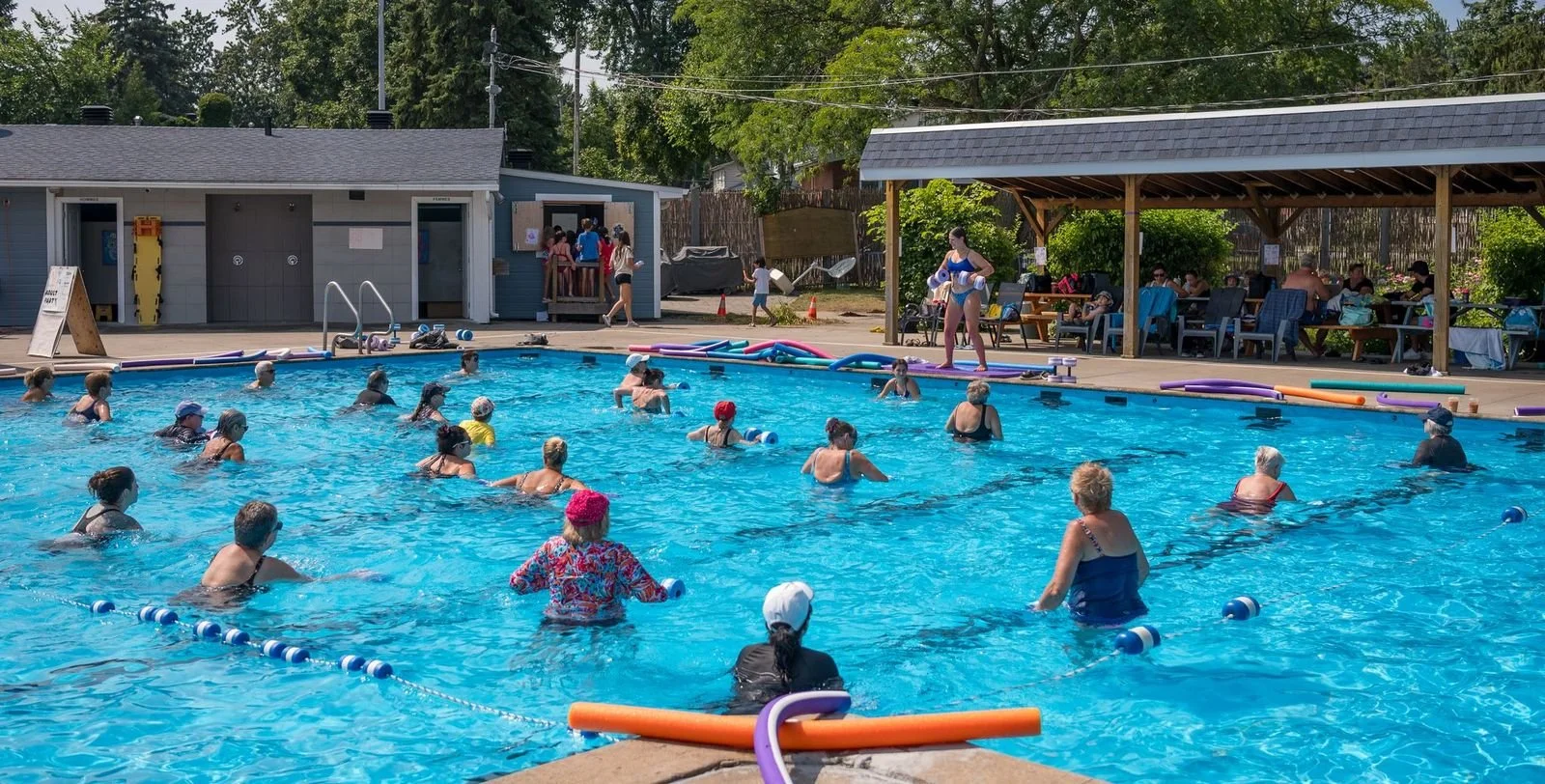 The Aquafit program is a fitness course offered 4x per week to adults looking for a fun and effective full-body workout. Our Aquafit classes help you to improve your cardiovascular health and build strength, all while enjoying the great outdoors! This program takes place in the pool at about waist height, making it the perfect low-impact exercise for members of all ages and fitness levels. The high-energy atmosphere, great music and enthusiastic lifeguards running the classes have attracted a loyal following over the past several years.